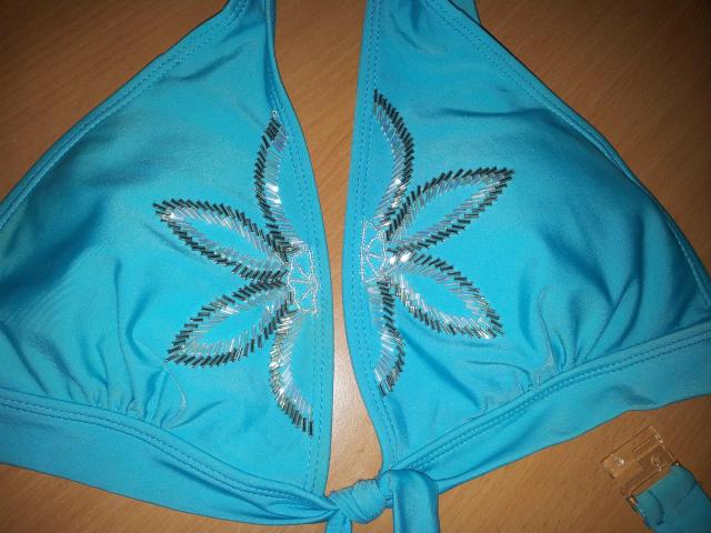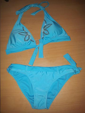 Parduodu nenešiotą ryškios žydros spalvos maudimuką. Pati jo nenešiojau, kadangi yra man permaža apačia ir didelis viršus. Viršus manau būtų apie 75B, dydis M; Apačia - S, nereguliuojama, apimtis - maždaug 80 cm (kol neištempta).