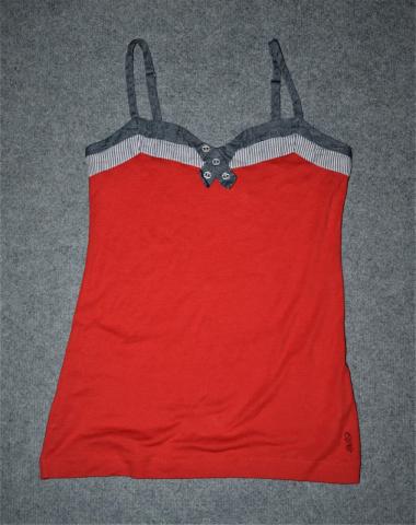 Parduodama arba mainoma raudona palaidinė reguliuojamomis petnešėlėmis. Ilgis - 48 cm; Krūtinė - 34,5 cm.