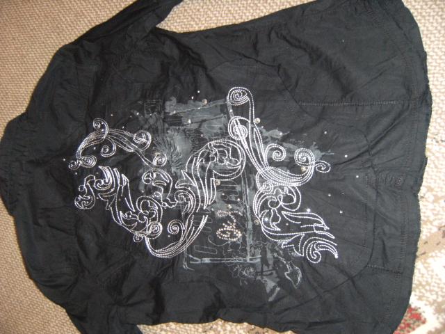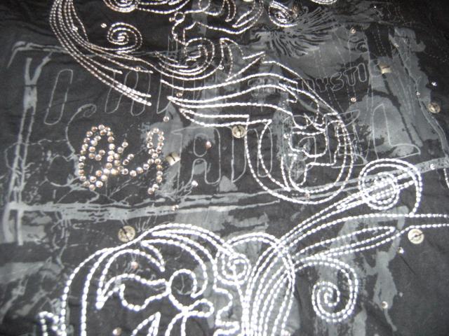 Nuostabus, isskirtiniai marskinukai,kurie man taip ir neprilipo,nepamegau nesioti marskinuku :( Ant kiekvieno metaliuko, uzsegimo logotipas(antra foto), ant nugaros siuvineta ir prideta akuciu blizgiu, (trecia foto)ir logotipas is akuciu padarytas (ketvirta foto). Na manau megstancioms dzinsukus, sie marskinukui puikus derinys pasipuosti :)Buvau uzsidejus gal kokia pora kartu,siaip defektu nera,tik pamaciau kad viena sponkute truputi islindus is mezdiagos (paskutine foto).Uzsegus nesimato :)
