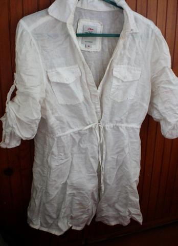 Vos kelis kartus užsidėti marškunukai iš S. Oliver. Balti, lininiai, susisagsto sagutėmis ir susiriša raišteliais. Mokėjau virš 100. Nepykite, nuotraukoje neišlyginti.