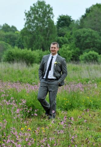 Žaismingas, neįprastas kostiumas. Buvo naudojamas tik vieną kartą, vestuvėms.