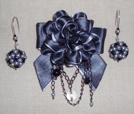 Šiuo metu šio komplektuko nebėra, bet jei atsirastų norinčiu, galiu padaryti naują :) Galima komplektuką arba atskirai. (Sagė 35 Lt., auskarai 15 LT.)
