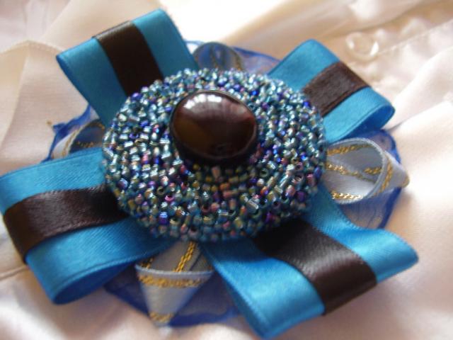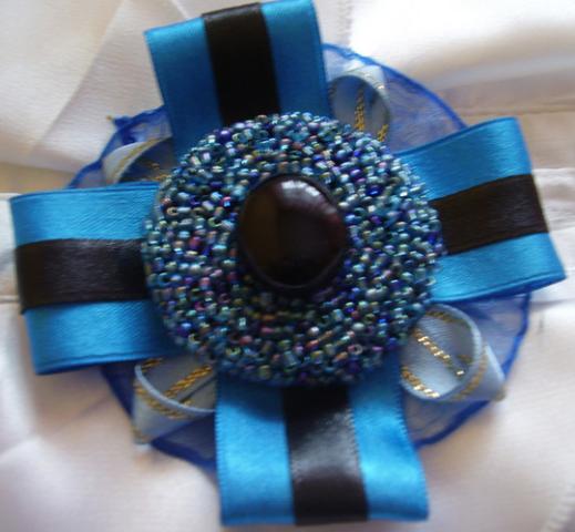 Vienetine sage is melyno biserio, melynos atlasines juosteles