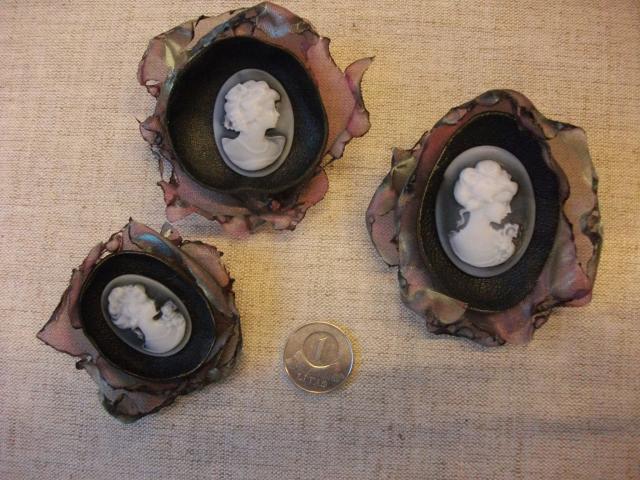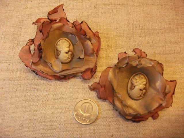 Ranku darbo sage su kameja yra rudos ir pilkos spalvos,pagaminta is akriliniu kameju ir sifono.