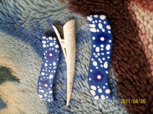 Du mėlyni ir vienas smėlio spalvos plaukų segtukai