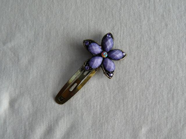 Naujas sagutis su gražia gėlyte. Spalva švelni violetinė.