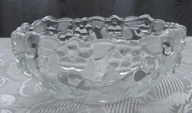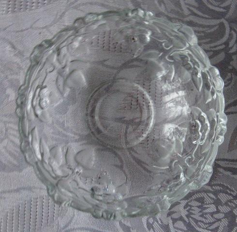 stiklinė, gelėmis ornamentuota, skersmuo ~13cm, aukštins ~4cm
