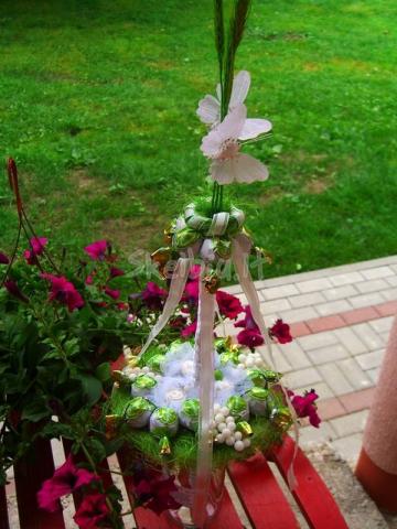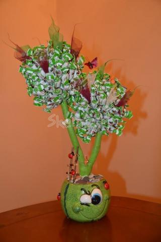 Rankų darbo saldainių puokštė arba saldainių medis. Tinka kiekvienai progai! Puiki staigmena Jūsų mažyliui. Priimami užaskymai. Saldainių lėlė, dovana margaitei gimtadienio ar krikštynų proga! Tel.:+37060183972