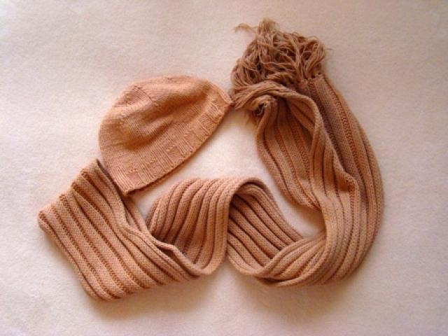 Ilgas (beveik trijų metrų), bet nepernelyg platus šalikas ir kepuraitė. Komplektas :)