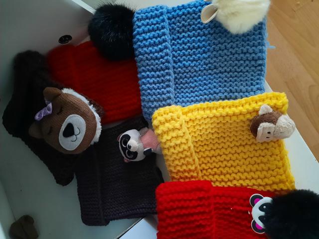 Megztos movos vaikams,šiltos,siūlai nekanda lengva nuimti ir uždėti,gali būti puoštos arba ne,spalva įvairi,vaiko amžius taipat
