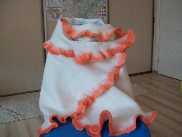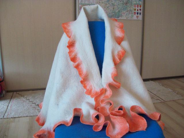 160x85 Skraistė. Tinka net apkūnesniai moteriškei. Labi puošnus ir tinka prie visko: ir prie džinsų, ir prie suknelės su petnešėlėmis.