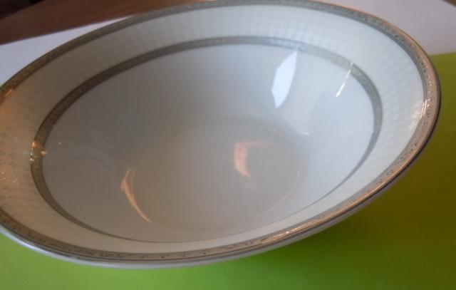 Porcelianinė salotinė, sidabro krašteliu, 15 cm skersmens ir 5 cm aukščio