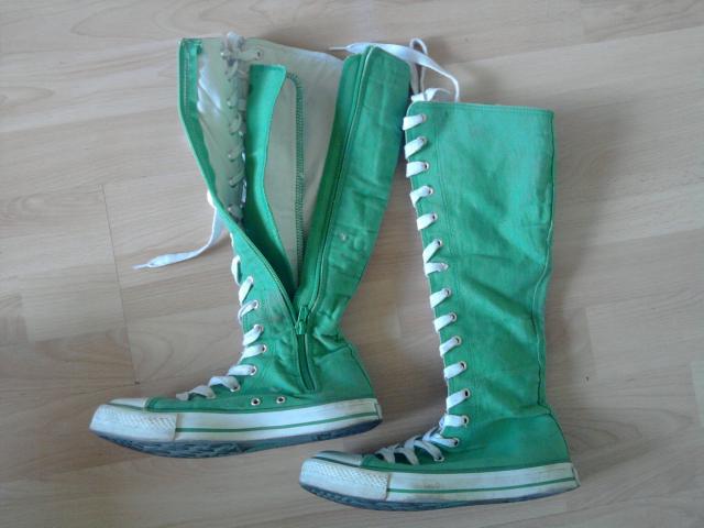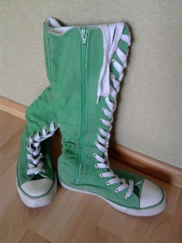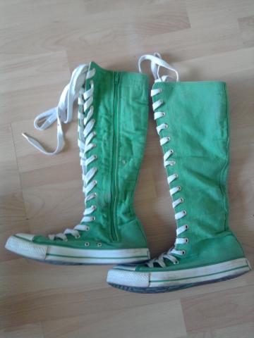 Ryškiai salotiniai džinsiniai batukai, nešioti, 38 dydis, suvarstyti, užsegimas šone(užtrauktukas), nesiekia kelių