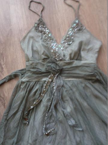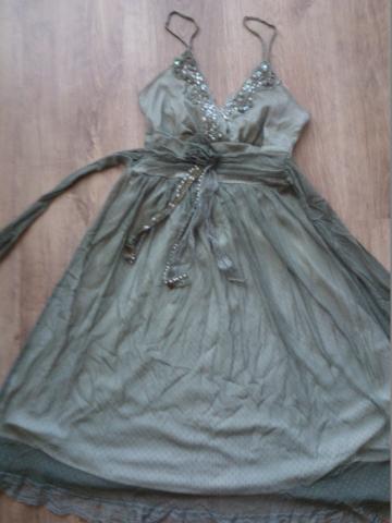 Dėvėta kelis kartus,samanų spalvos siuvinėta suknelė. Tampri medžiaga S/M