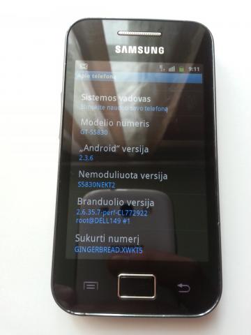 Parduodu Samsung Galaxy Ace, stovis geras. Viskas pilnai veikia. Komplektas : pakrovėjas ir telefonas. Siunčiu paštu.