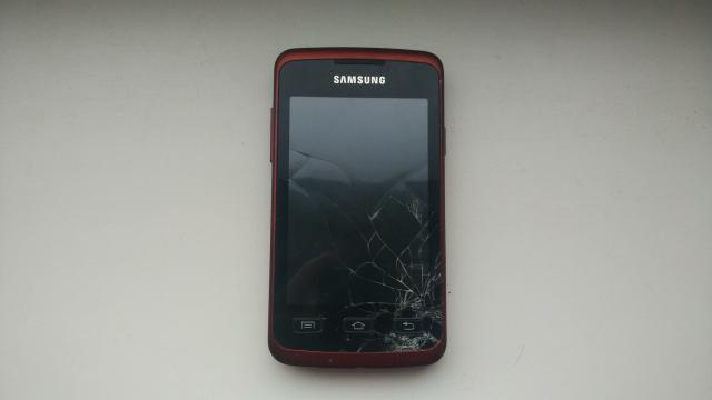 Samsung Galaxy Xcover, isijungia, suduze abu ekranai, garsai yra, prie kompiuterio prisijungia, atminti rodo, kaina vos 8€