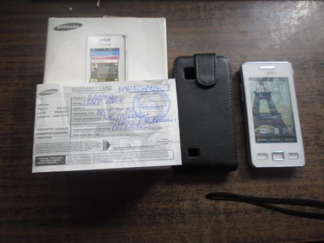 Samsung s5260 Stra II,beveik naujas, yra garantija,dokumentai, pakrovėjas, USB laida, ausinukai,vartotojo vadovas, pridedu dėklą telefonui. 3,2 MP kamera, "Wi-fi" ryšys, Bluetooth,Facebook.