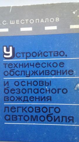 Шестопалов К.С. Устройство, техническое обслуживание и основы безопасности вождения легкового автомобиля. 1976. В пособии рассматриваются назначение, устройство и принцип действия механизмов, приборов и систем легкового автомобиля (в основном – применительно к автомобилям «Моквич-412» и «Жигули» ВАЗ 2101), даются советы по устранению неисправностей и техническому обслуживанию. Содержатся сведения из теории движения автомобиля, по дорожно-транспортным происшествиям, вождению автомобиля в различных условиях