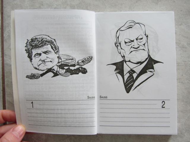 445 ir puikiai pažįstamų, ir galbūt tik kažkur atytų šaržų. Juos dailininkas Zeonas Tarakevičius nupiešė per pastaruosius 20 metų. Kalendorius yra 2005 metų, tačiau dėl to nepraranda savo vertės. Po kiekvienu šaržu yra vietos užrašams, mintims, galima naudoti kaip dienoraštį