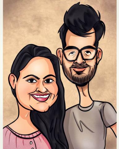 Šaržų piešimas pagal užsakymą iš nuotraukų ant pasirinkto lapo