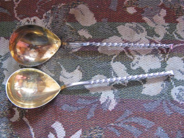 Du sovietiniai, melchioriniai šaukštai salotoms Kaina už abu.