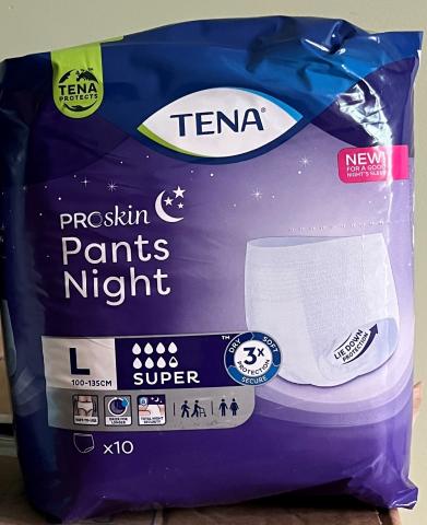 Parduodu naujausio modelio sauskelnes-kelnaites "Proskin Pants Night L super" (7,5 lašai), pakuotėje 10 vienetų, pakuotės kaina 5 Eur.
