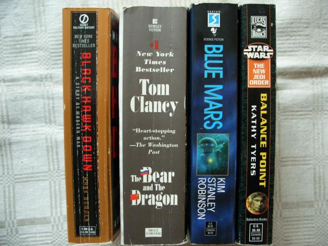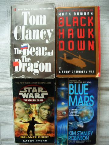 Tom Clancy. The bear and the dragon [trileris]; Mark Bowden. Black Hawk down [trileris]; K.S.Robinson. Blue Mars [Sci-Fi]; Kathy Tyers. Star Wars. Balance Point [Sci-Fi]; Siunciu per LT Pasta, arba Venipak [4lt]