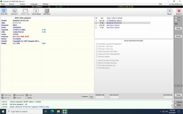 ST19171N Beveik antikvarinis 9,1GB 1997m. gamybos HDD, Ultra-SCSI, 7200rpm, 512KB Buffer, skaitymą ir rašymą testavau su Victoria, veikia be problemų.
