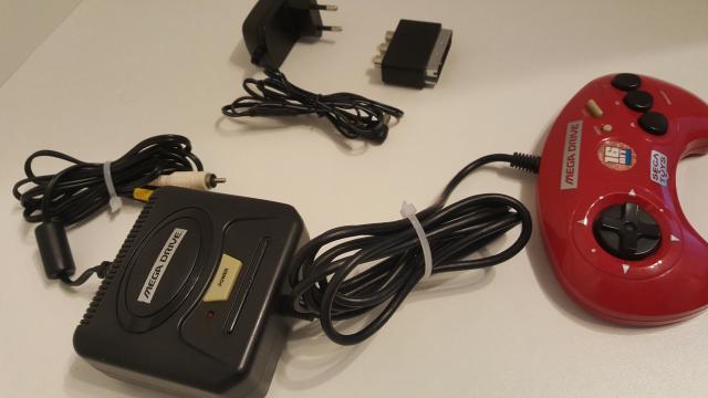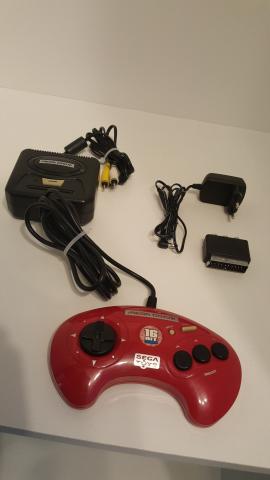 Sega Toys leidinys - mini Sega Mega Drive su instaliuotais šešiais legendiniais žaidimais. Ši mini konsolė puikiai veikia su bet kokiu naujausiu TV. Konsolė maitinama 6v blokeliu, arba elementais. Visi priedai nuotraukoje. Galiu siūsti, išlaidos pirkėjo. Žaidimai esantys viduje: 1. Sonic The Hedgehog 2 2. Ecco The Dolphin 3. The Ooze 4. Columns 5. Gain Ground 6. Alex Kidd in the Enchanted Castle
