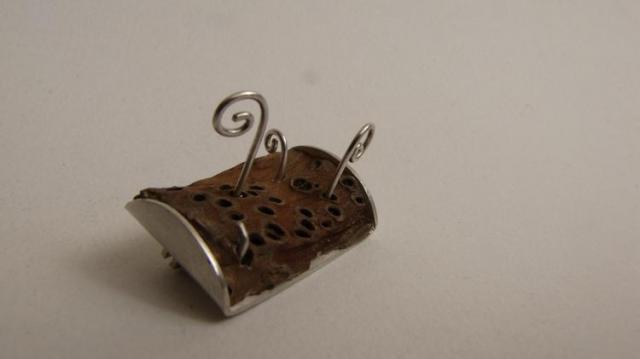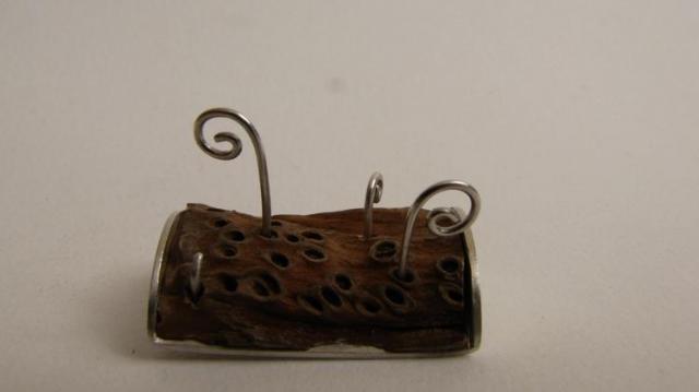 Rankų darbo segė su medžiu. Praba 925