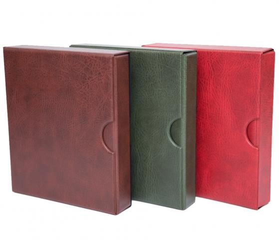 Vokiškas Leuchtturm albumas Grande. Tvirtas ir kokybiškas segtuvas, su įdėklu (be įmaučių). Tinkantis A4 Grande įmautėms, segtuvo išorinis plotis 55 mm ir lengvai sudėsite 50 įmaučių su banknotais. Lapai susegami į 4 žiedų mechanizmą. Puikus kainos ir kokybės pasirinkimas