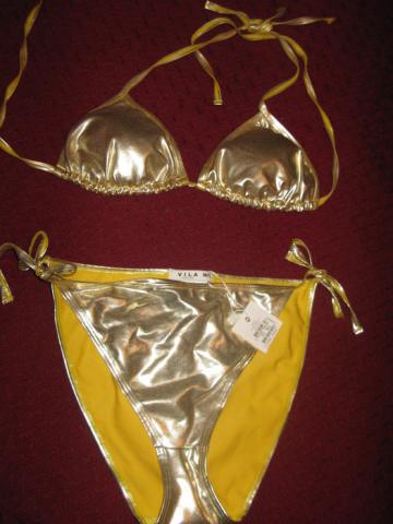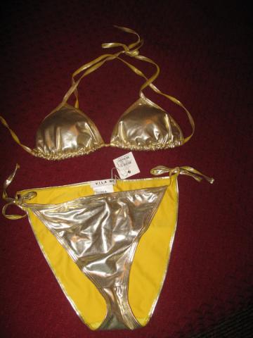 Labai grazus auksinis maudymosi kostiumelis, naujas, dydi raso m/l.