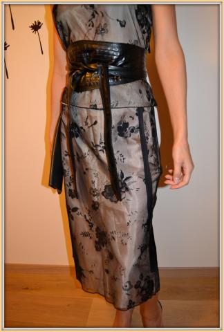 Labai graži medžiaga, apačia kūno spalvos, viršus gipiūras. Parduodu tik sijoną, viršų pridedu dovanų nes ten reikia siaurinti ir tvarkyti pagal kiekvienos figūrą. Sijonukas idealios būkles, bendras ilgis - 76 cm. Parduodamas be diržo. Tinka S-M.