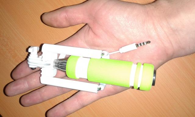 selfie lazda - 5.50€ Privalumas tame, kad nuotraukos padaromos paspaudus mygtuka, o ne turint atskira pulteli. Susilanksto taip, kad isidesit i pacia maziausia rankine. zalios spalvos. Neregistruotas siuntimas NEMOKAMAI. veikia puikiai