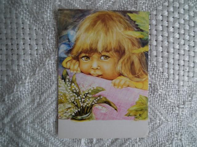 Sena atvirutė.Mergaitė su pakalnutėmis