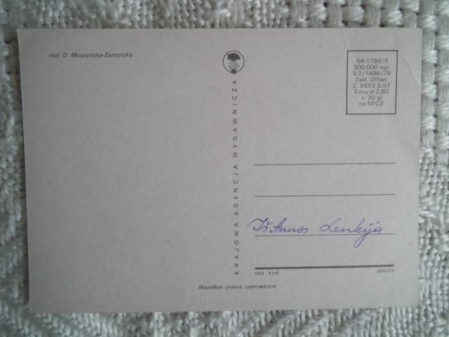 Lenkiškas atvirukas. Mergaitė su pakalnutėmis. Dailininkė D.Muszynska-Zamorska