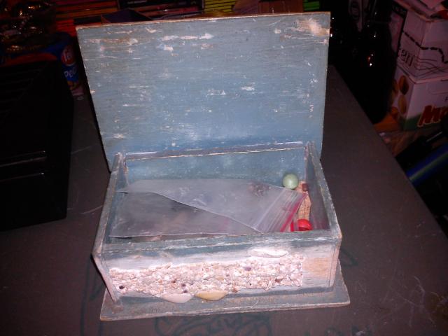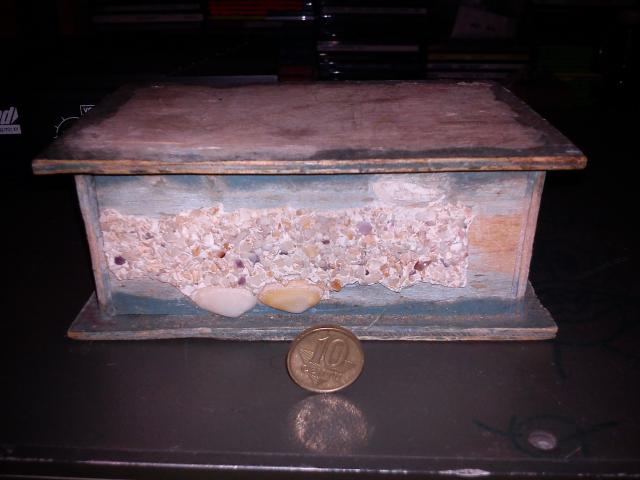 sena dezute ( tarpukario ar ankstyvo pokario laiku ). buvusi dekoruota kriauklemis ir akmenukais, kurie beveik nubyreje. dydis matosi foto.
