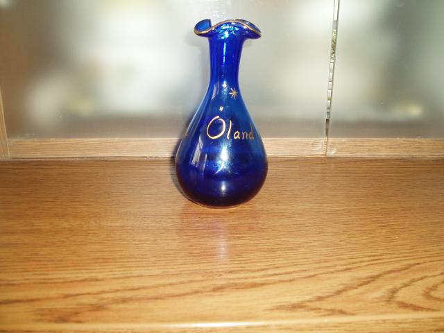 Sena tamsiai mėlyno stiklo vazelė