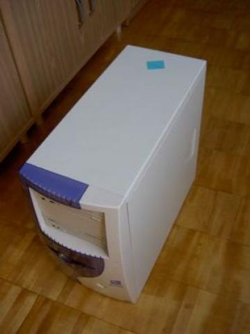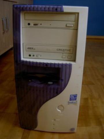 Intel Celeron 633 MHz. 768 MB RAM, apie 20 GB HDD. CD-RW (write 8, rewrite 2), Floppy. Turi SoundBlaster garso plokštę (5.1), tad gali tarnauti kaip muzikinis centras. Iki pernai vasaros naudotas internetui (tempė 9 "Operą") ir Soliteriui.