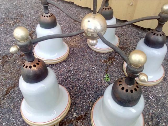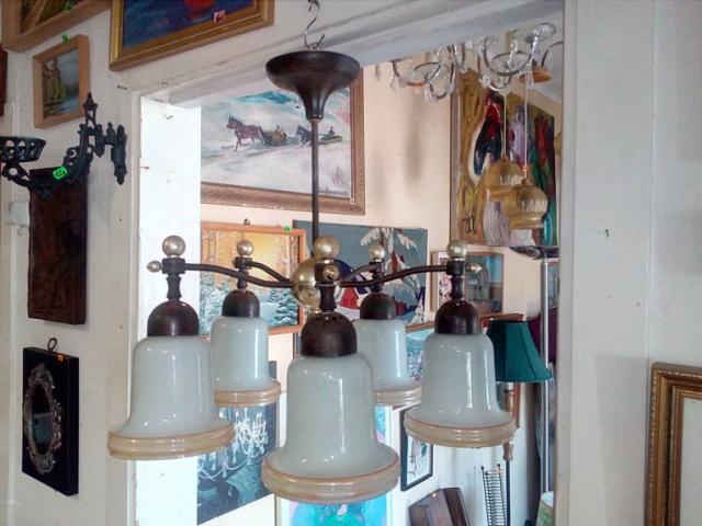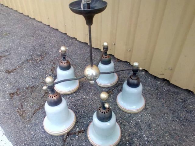 Senas tarybinis metalinis penkių lempų šviestuvas.