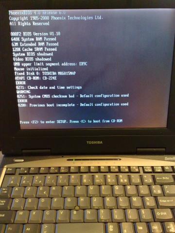 Senas Toshiba S1700-200 Kompiuteris Kraunasi Windows ME (Milenium) bet taip ir neuzsikrauna Be pakrovejo. Su ramais ir hardu