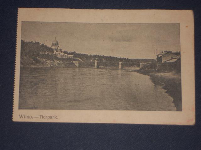 Senas 1916 metu atvirukas. Vaizdas i tekancia pro Vilniu Neri.