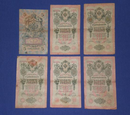 Seni cariniai rubliai 5 ir 10 nominalo banknotai (popieriniai pinigai)