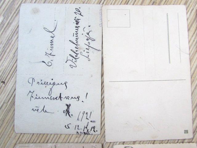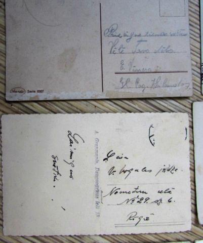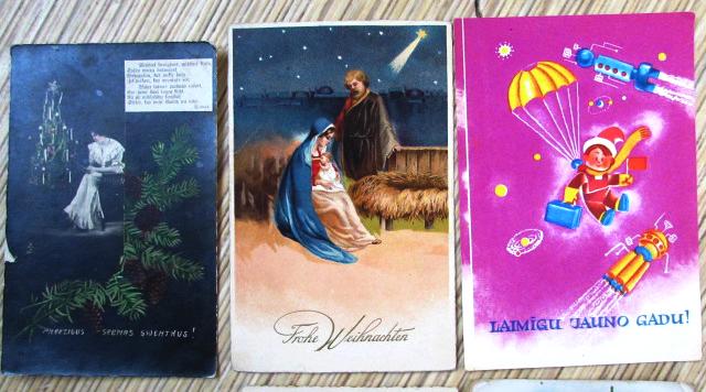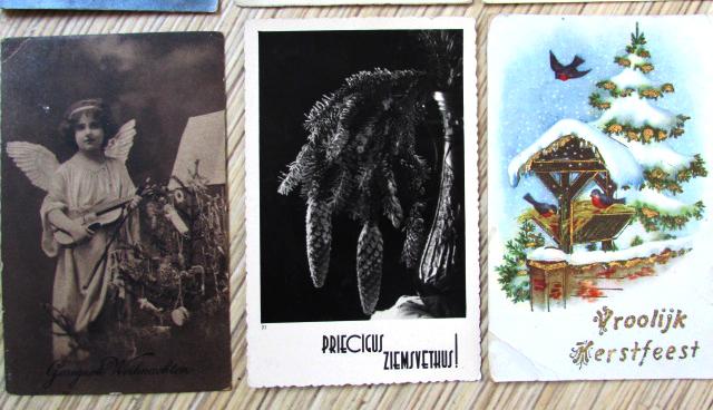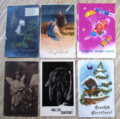 Seni naudoti atvirukai. Vieneto kaina - 2 eurai. Viršuje vidurinė - neužrašyta, šiek tiek įplyšimą turi. (Su parašiutininku - NĖRA). Kitos - panaudotos. Atvirutė su lesyklėle turi paauksavimus ir turi pašto ženklą, štampą, 1930 metų. (Kairioji viršutinė - NĖRA, Atvirutės su angelu - NĖRA)