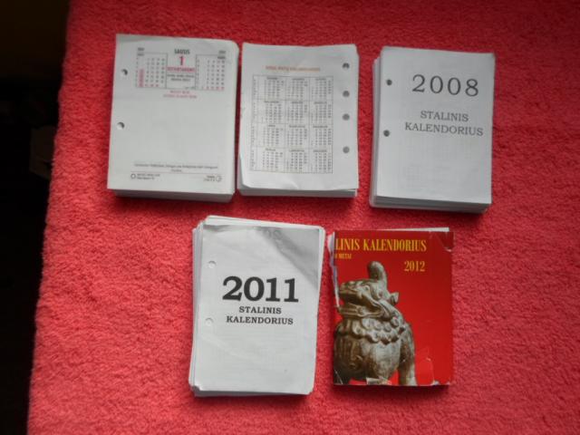 2004, 2006, 2008, 2011 ir 2012 metų nepilni staliniai permetami kalendoriai. Kai kurie lapeliai su užrašais, todėl juos išmesiu. Ant kiekvieno lapelio yra 2 dienos, iš abiejų pusių. Galime tartis ir dėl vieno konkretaus lapelio.