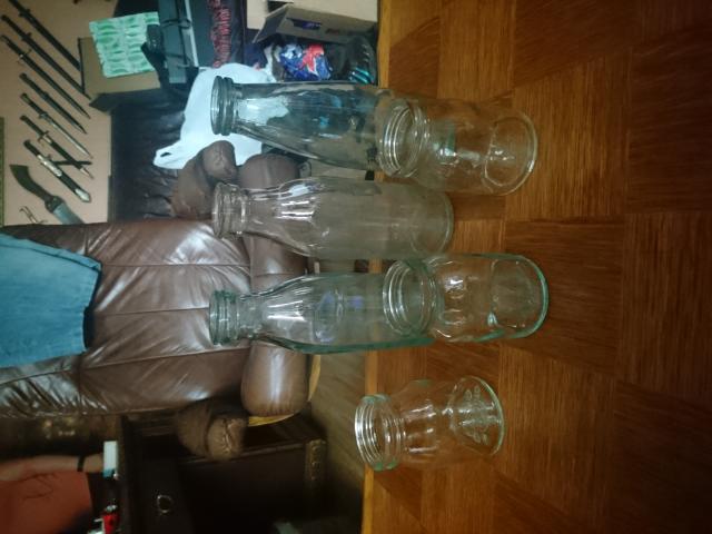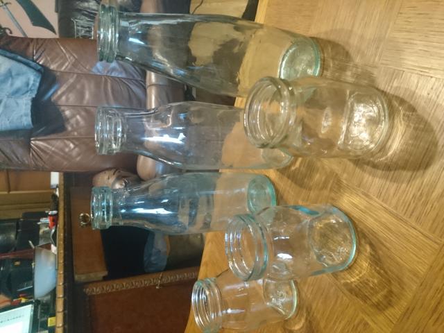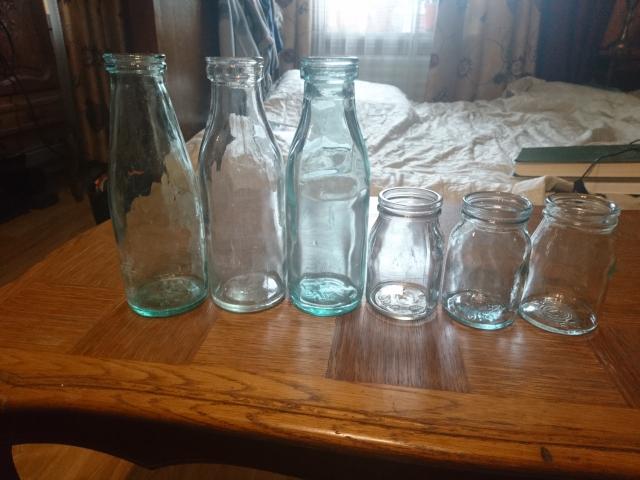 Seni pieno ir grietinės buteliai. Pieno butelis - 2 Eur, grietinės - 1 Eur.