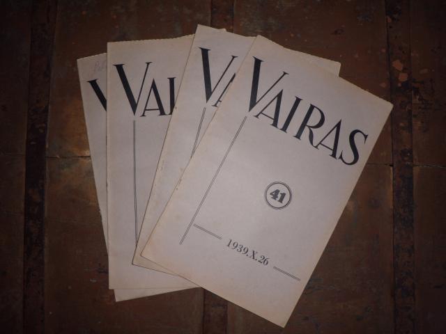 Žurnalai "Vairas" 1939 m. Yra 33, 35, 37, 38, 41, 42, 43, 44 Nr. Kai kurie geros kokybės, kai kurie nelabai. Dėl kainos derėsimės.