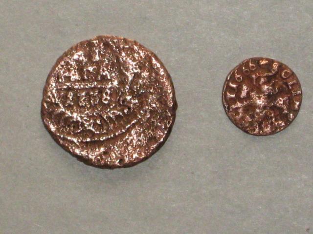 Siūlykit kainą. Manyčiau kad čia brokuota arba labai sena todėl turėtų būti reta ir vertinga, šalia dar viena sena monetukė