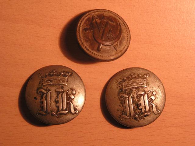 1 rusiška saga su pjautuvu, kūju ir žaibu ir 2 vokiškos sagos su užrašu "J.K. Knopffabrik Joh. Wilh. Sauer Dresden Frauengasse"