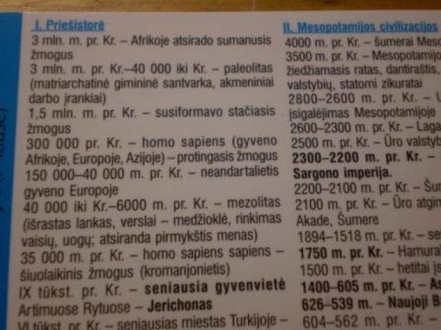 Maža svarbiausių datų lentelė, patogi nešiotis su savimi.
